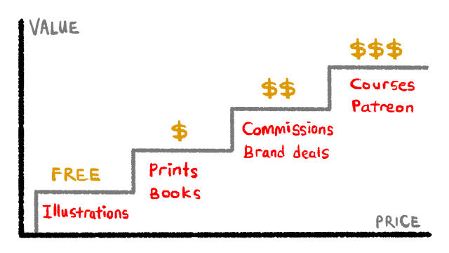 Ultimately, I like drawing comic strips but I didn’t want to build my personal brand around comics strips, especially since I don’t think I can continuously write jokes for longer than a few months. it didn’t seem like a scalable idea for an art business too.
