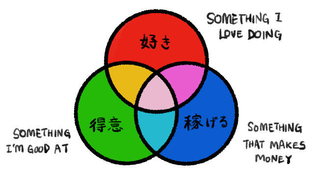 With the help of the Venn Diagram exercise, I settled with “creating illustrations and teaching art” and dropped other things like “freelance programming”, “gamedev” and “teaching Japanese”.