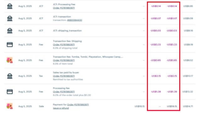 What I didn’t expect was that the customer had to pay additional fees on top of the 15 USD, bringing it up to 18.15 USD. And after that, Etsy takes some cuts for various fees, which ended up with me receiving the final profit of 12.39 USD.