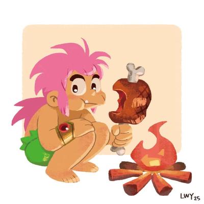 High-quality artwork of the beloved Tomba! Playstation classic, by now-defunct Whoopee Camp. Featuring Tomba enjoying cooked meat over a campfire. Perfect as a cute, vibrant decoration for your desk or wall!Product: Unframed, paper onlySize: 5.7x5.7 inch (145x145 mm)Paper Finishing: MattePaper Weight: 220 gsm