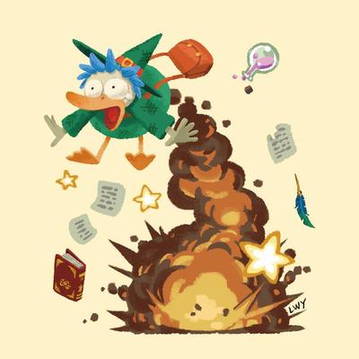 A cute illustration of a witch duck blown up by a failed potion experiment. Keep trying!Product: Unframed, paper onlySize: 5.8x5.8 inch (148x148 mm)Paper Finishing: MattePaper Weight: 220 gsm
